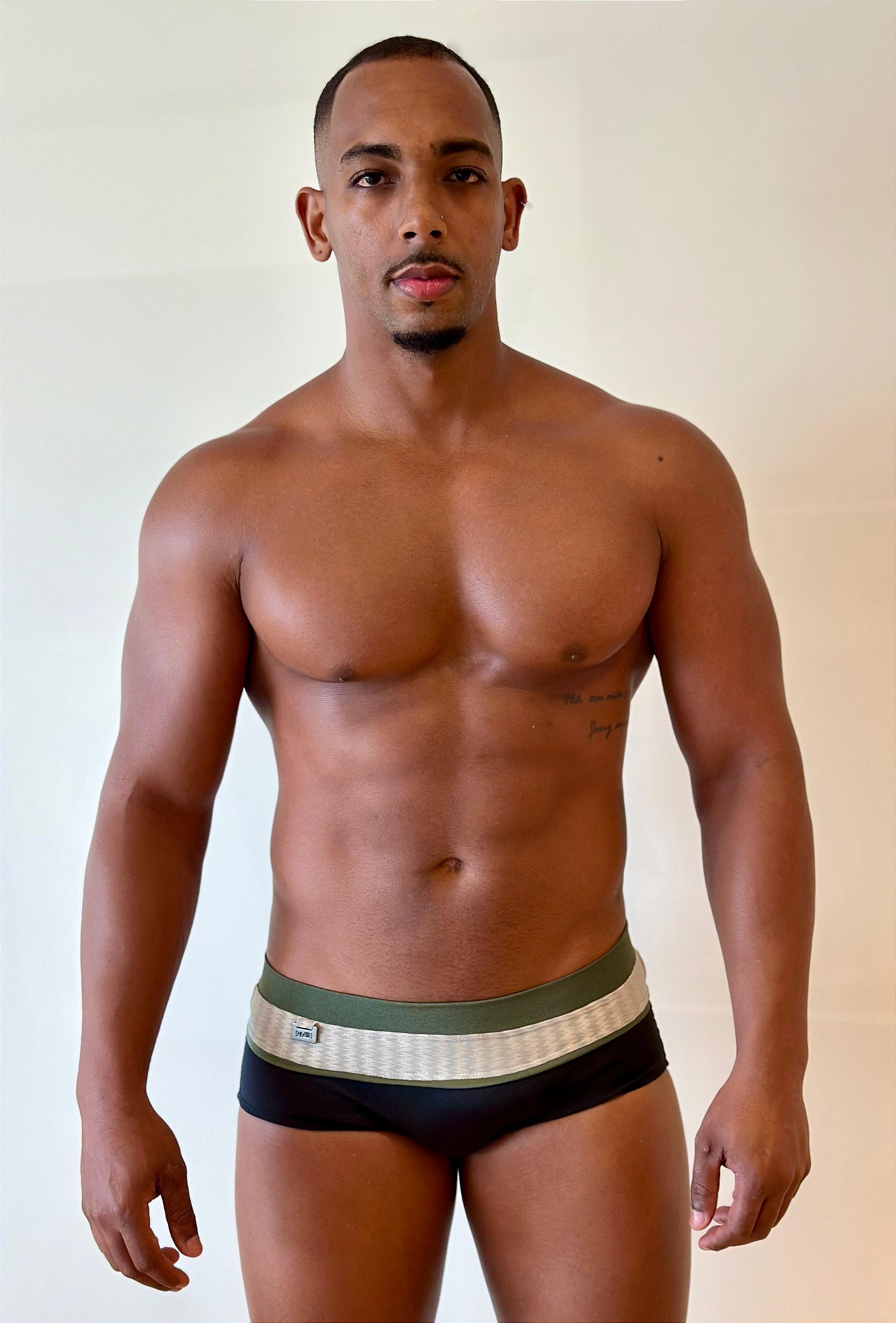 Sunga Tradicional Barrada Tricolor Preto/ Chumbo/ Verde Militar MenF5