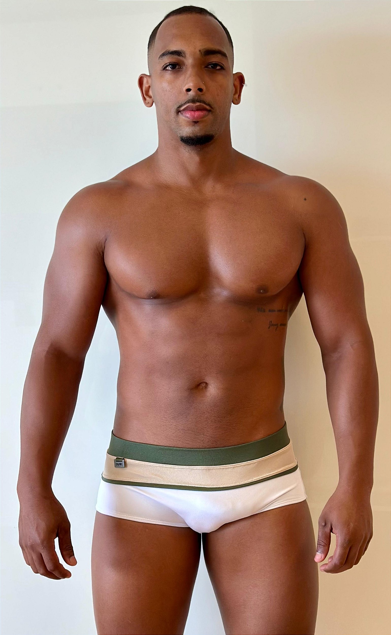 Sunga Tradicional Barrada Tricolor Azul Marinho/ Branco/ Beje / Verde Militar MenF5